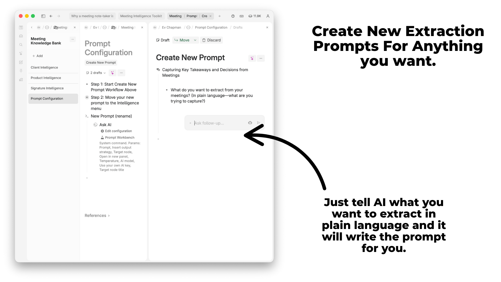 If it's recorded in Tana with a transcript, you can extract from it. Client calls, team meetings, interviews, coaching sessions—whatever.